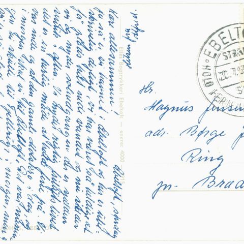 Flot turiststempel (Hold ferie i Gjøngernes by) på postkort stemplet Præstø 22.8.1955. Motivsiden viser Roskilde Domkirke. Postkort i fin stand.