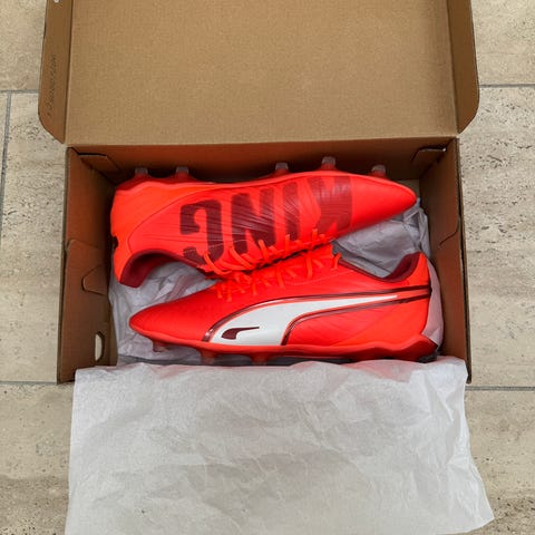 Nye fodboldsko. Aldrig brugt. Str. 10,5/45. Disse har stået i skabet i nogle år og da der ikke længere kan spilles sælges de.