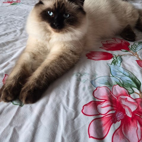 Han vejer ca.6.5kg. Er meget kælen, rolig, social, hengiven, kærlig og erfaren.