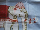 Design James Harrison Wilson Thompson Dobbeltsidet mønster af Thai-elefant /Thai elephant. Smuk douche lyseblå bund med hvid/paprika/grøn m.m. udsmykket elefant
