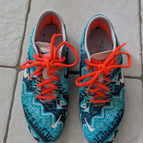 Nike Free RN Flyknit i lilla. Dame størrelse 39. I god stand, men brugsspor langs kanten på sålen. Ikke brugt ret meget (så fotos af underside af sålen). Kan ses/hentes i Kbh indre by eller sendes.
