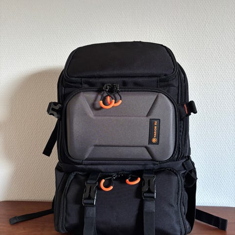 Virkelig god og stærk foto ryksæk, som kan åbnes på midten til kamerahus og objektiver.