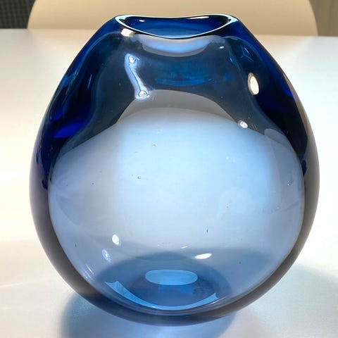 Den smukkeste dråbeformet vase. Tror den er fra Holmegård eller Kastrup Glas værk.