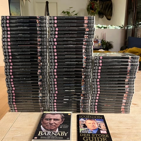 Dvd i en boks med Barnaby nr. 1 - 11. Det er kun den første, der er åbnet. Koster kr. 15 - stk. Hvis du køber alle 11 dvd får du dem for kr. 150, - .
