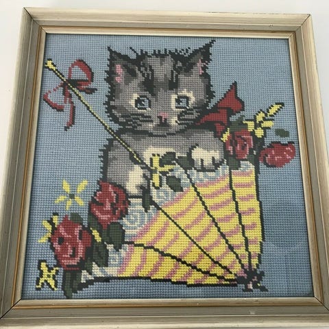 Andre samleobjekter, Kat . Fløjl . Ophæng, Retro billede . Retro ophæng . Kat . Fløjl . Skønt kært Retro kat billede i fløjls materiale sat ind i nyere ramme . Måler 19 x 25 cm kr 35,-