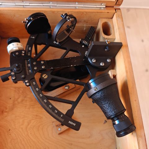 Sekstant i flot trækasse inkl. korrektionstabel.