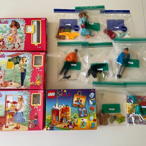 12 sæt Lego Scala, alle sæt er komplette iflg bricklink, med undtagelse af en hårelastik i et sæt, og postkort i et andet. Har ikke været leget ret meget med, og har været passet godt på.