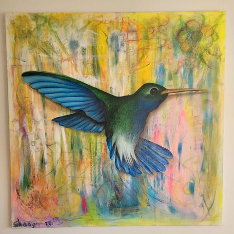 100x120cm’s fuld farveglæde! Kvalitetslærred fra Bogø og masser af lag maling.