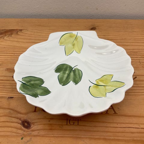 Brun muslinge formet krukke i fajance porcelæn, med låg. Ca. 6 cm høj og ca. 11 cm bred. Sælger lysestage i samme farve.