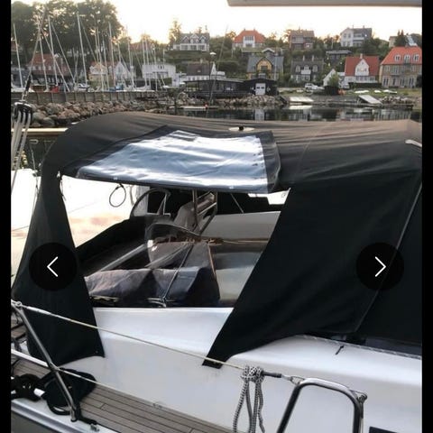 Sprayhood med komplet cockpittelt fra 2019 til Bavaria 37 Cruiser. En tur til kalechemageren for uskiftning af nogle af syningerne og 2 forruder som visse steder er blevet møre p.g.a. Solens stråler. Udover dette står teltet i rigtig god stand helt uden huller og revner i hverken stof eller ruder.