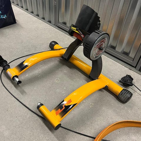 Der følger alle ledninger software osv. med samt et hometrainer dæk.
