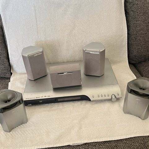 JVC , DVD afspiller med komplet højttaler og tilbehør og ledninger, mm.
