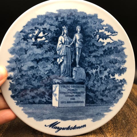 Smørbrik med motiv af Store Rygbjergstenen produceret af Royal Copenhagen, 1975-1979.