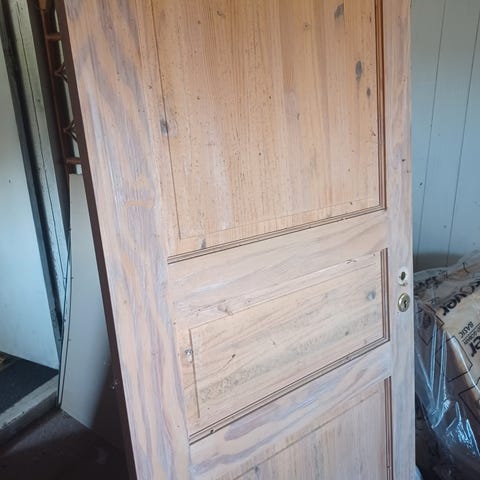 To ældre dybe fyldningsdøre, den venstre dør: