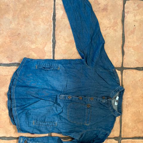 Super sød, kortærmet skjorte med blå og hvide striber i retro look fra Pompdelux.