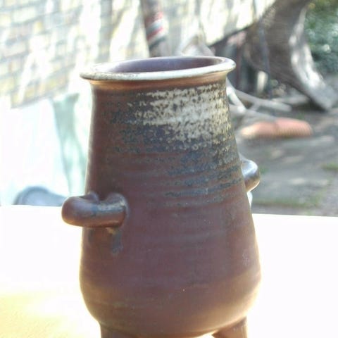 Okela stoneware, Danmark, 5 kuvertaskebæger, H: 3 cm, D: 9,5 cm, 1 lille vase, H: 8 cm, D: 8 cm, i stentøj, Produceret i Danmark. Fremstår helt nyt, uden skår.