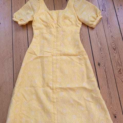 Smuk vintage kjole, multifarvet - gul, sort, hvid