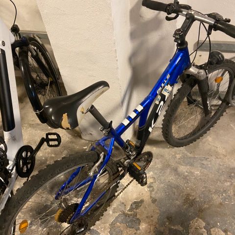 Mountainbike i blå farve designet til drenge, en god begyndercykel som barnet kan vokse med. Cyklen er udstyret med en robust ramme og er velegnet til off-road kørsel. Den har en komfortabel saddel og et bagagebærer til praktisk opbevaring. Ideel til både daglig transport og fritidsbrug.