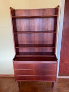 Begge reoler er i varm, smuk teak farve og har almindelige brugsspor, men er i fin stand - se billeder.