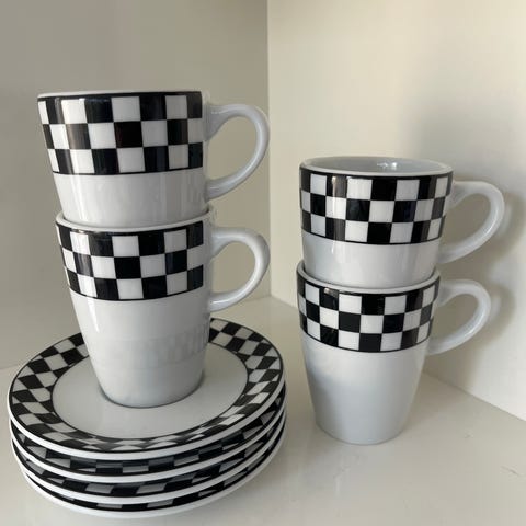 8 krus med hank fra pillivuyt. De er fra serien Le Mans og kan indeholde 27cl.