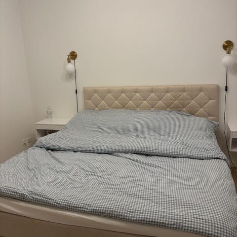 Sengegavlen er 224 cm bred.