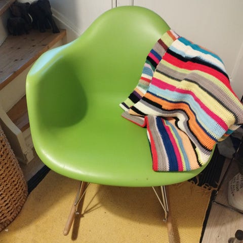 Gul gyngestol. Ligner eames.