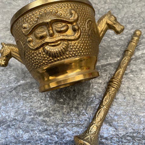 ✨️🦁🦁Morter, Malm Bronze Messing 2 stk Oldefar sæt