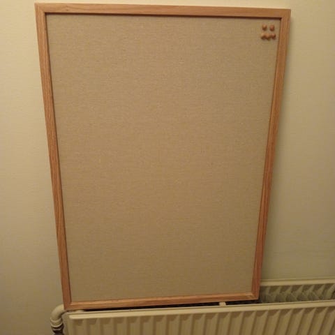 Opslagstavle i blød masonitplade.