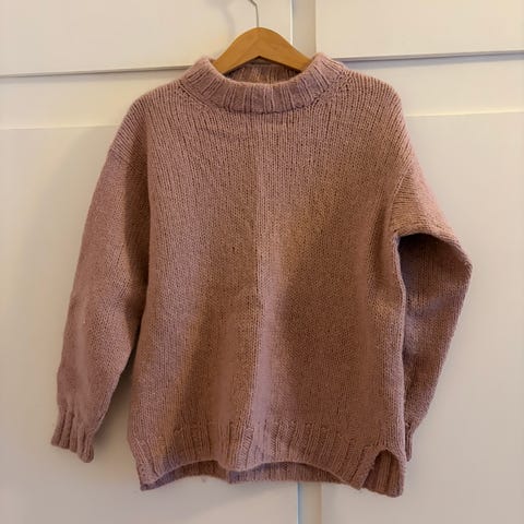Lækker foret striktrøje med hætte og aftagelig pelskrave.