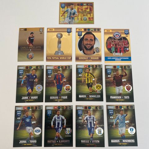 Panini Adrenalyn FIFA 365 2018, Nordic Edition fodbolds samlemappe (mappen har skader/knækket på omslaget), med official guide, game board og følgende kort: