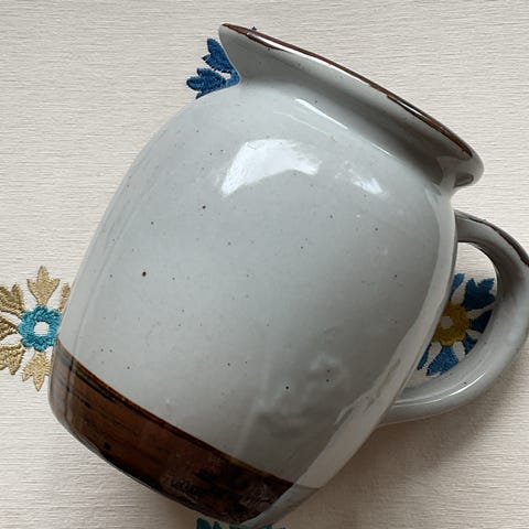 Fineste kande/vase fra Knabstrup. Den måler: 17 cm i højden, 11 cm i diameter (øverst), 16 cm i diameter i bunden. Kanden har brugsspor, men står stadig i flot stand. Den kan afhentes på Frederiksberg.