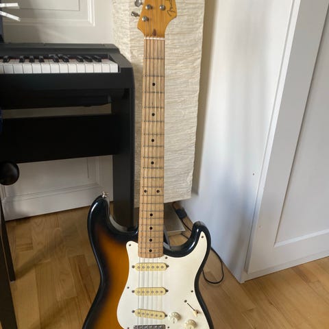 Står helt original med syngende singlecoils og tidstypisk 3-vejs switch.