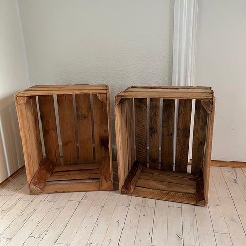 Gammel æblekasse. Kan fx bruges til sofabord. To stk. haves. Prisen er pr. stk.