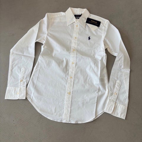 Helt ny Ralph Lauren skjorte i hvid med lyseblå striber. Aldrig brugt. Kommer fra røgfrit og kæledyrsfrit hjem.