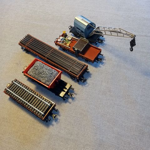 5 div. vogne med rørlast i plastik/metal. Alle vogne i pæn stand med plastik koblinger. Ingen afbrækkede dele og kun brugsspor på hjul. Vognen med Mannesmann røret er original Märklin 00750-05 med æske. Ser ubrugt ud. Sælges kun samlet. Sender kun med DAO til pakkeshop for 45 kr Se evt mine andre annoncer med Märklin