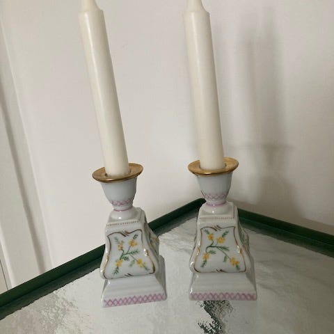 Porcelæn, Lysestager, Krone AK, Med blomster motiv