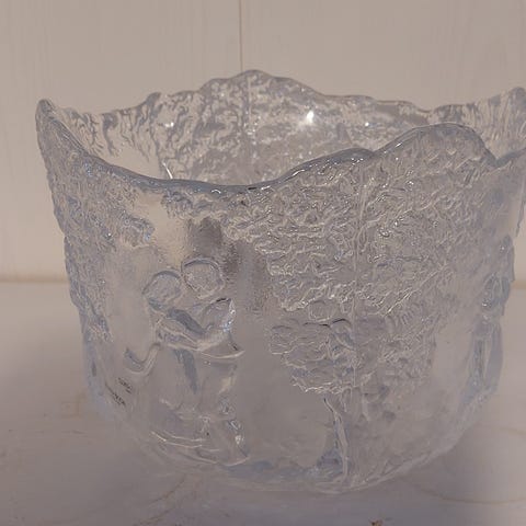 Stand: ingen skader. (Hvad der ligner en revne er blot en gennemgående farvefold indeni glasset.)