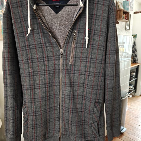 Sort/mørk navy hættetrøje, brugt få gange. Orignalpris var 800 kr.