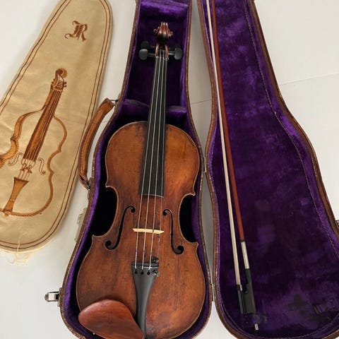 Violin Bue/Bow ( 8000dkk), Roland G Penzel, For English look bellow Mesterbygget af og stemplet Roland G. Penzel. Det er model nr. 2 - sølvmonteret 995 sølv, lys fernambuk, tredelt sølv/ibenholt skrue med perlemorsende, enkelt perlemorsøje i frosch. Frosch med familievåben , 2 skruer i froschbane, massiv sølvbevikling. Buen er fra ca 2012 og Roland G. Penzel (født 1952) laver ikke denne model mere. Købt fra violinbuemester Erik Danielsen (violinbuen.dk). Masterbuilt German Roland G. Penzel violin bow in 995 silver. It is model nr. 2 which is no longer produced by Roland G. Penzel. Bought from the professional violin bow restorerer, rehairer and reseller og bows, Erik Danielsen (violinbuen.dk).