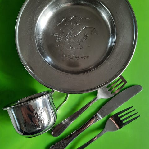 Gammel i pletsølv med Ole Lukøje motiv. Kan pudses op. Ø 18,5. Skal afhentes.