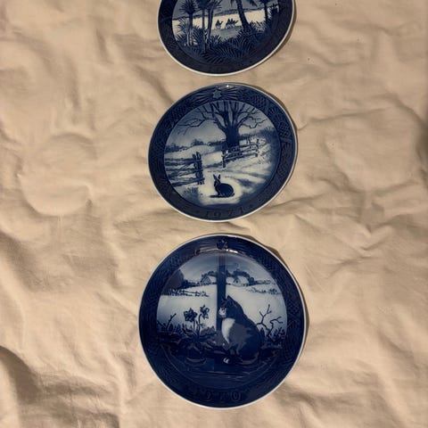 Juleplatter Royal Copenhagen fra 1971, 2 fra 1972, 1973, 1974 og 1976