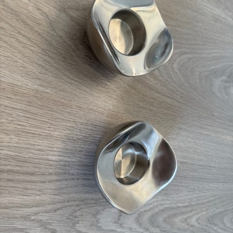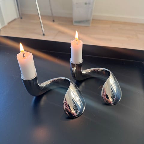Georg Jensen Lysestager i stål, til almindelige lys, Fra serien: Bloom, H: 8 cm, Fantastisk flotte stager.