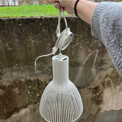 Diameter 20cm. Højde 26cm. Muligvis Nordlux lampe. Rustfri stål. Røgfrit hjem. Kan sendes.