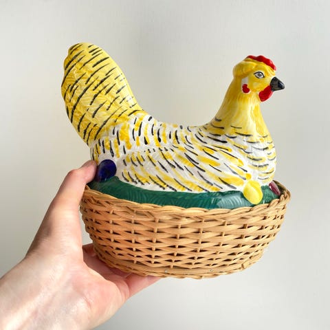 Meget flot gammel æggehøne i god stand (se billederne). Jeg kan ikke se nogle afslag nogle steder. Der er lidt hvidt på den røde kam på hønen, men det er IKKE afslag.