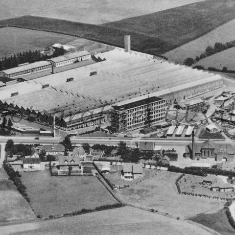 Ubrugt postkort fra ca. 1952 med Danfoss ved Nordborg. Kortet viser villaen,