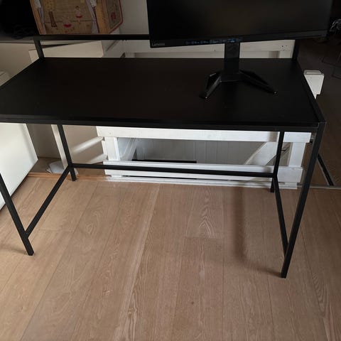 Et flot skrivebord. Noget af “tapetet” er kradset væk. Skuffer virker som de skal.