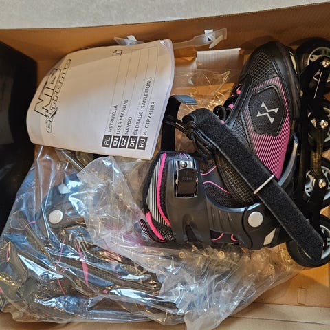 Helt nye rulleskøjter dog prøvet en gang. Størrelse 39-42 da man kan justere længden.