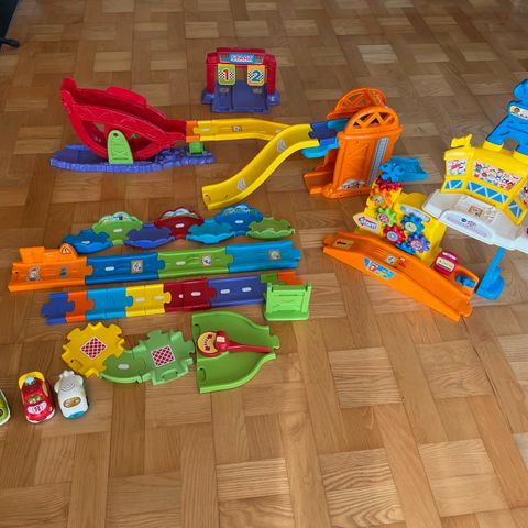 Lille bilbane med tilhørende bil.
