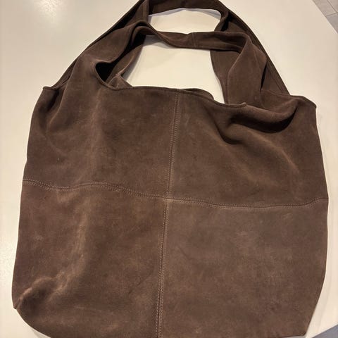 Den er brugt og har derfor et lidt slidt look som ruskind får, men den er stadig rigtig god.