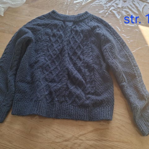 Vinrød striktrøje i 9-10 år. En favorit, så den er brugt en del.
